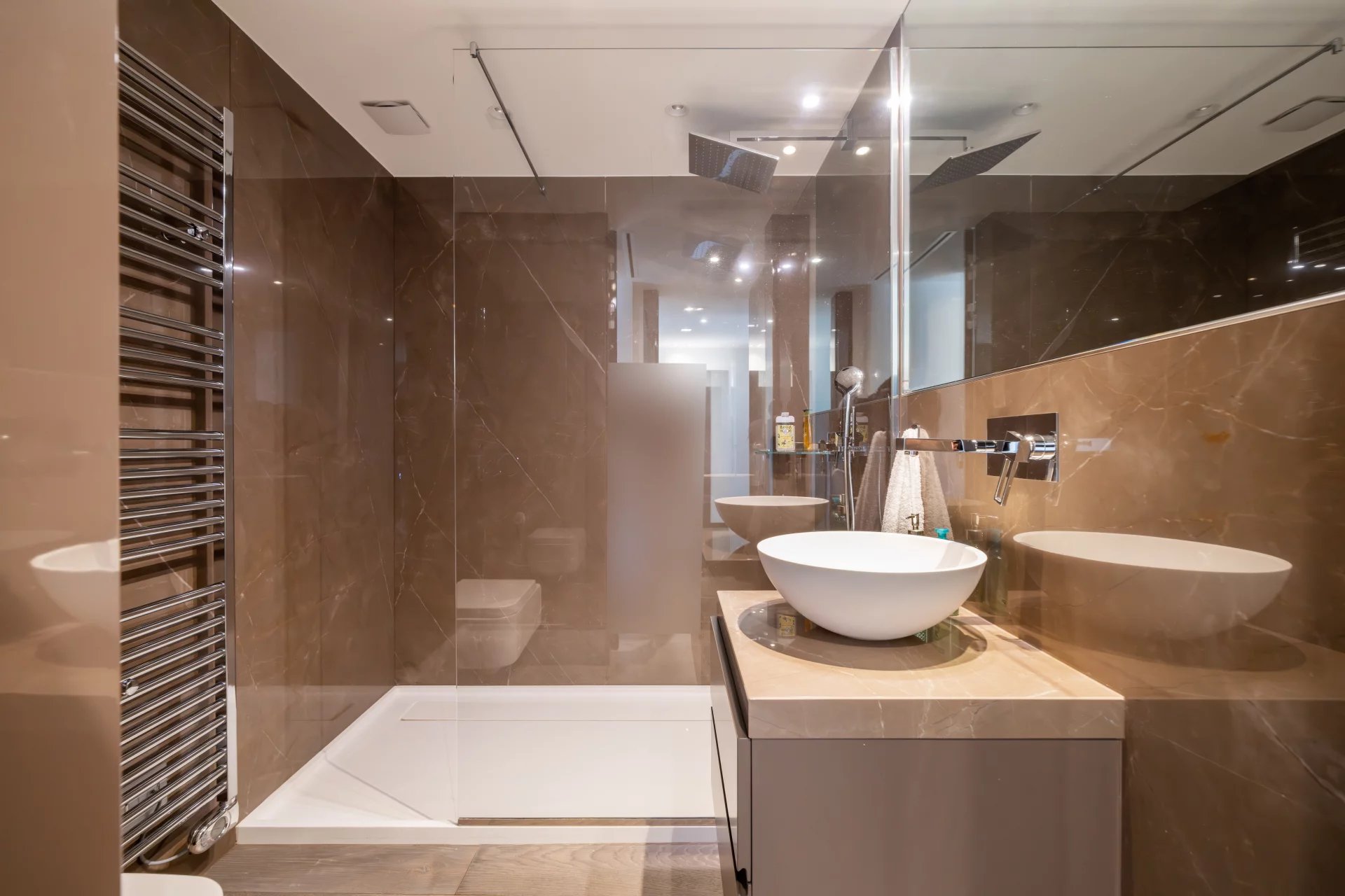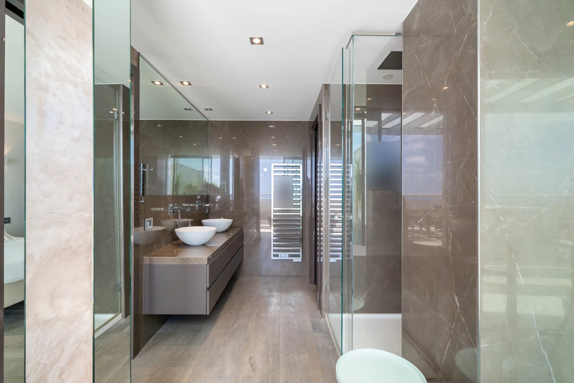 The penthouse offers three bedrooms, each with its own private en suite shower room and toilet, ensuring privacy and comfort for all residents and guests.